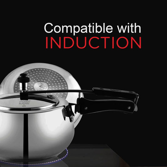 PNB Kitchenmate Pro Cooker -Stainless Steel Pressure Cooker Induction and Gas Base, Induction Pressure Cooker With Inner Lid, Induction Cooker, Mirror Finish, Silver | 5.5L