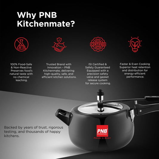 Discover premium cookware and pressure cookers from PNB Kitchenmate, trusted by Indian kitchens for generations. Our collection features high-quality kitchen essentials built with superior craftsmanship and innovative design.