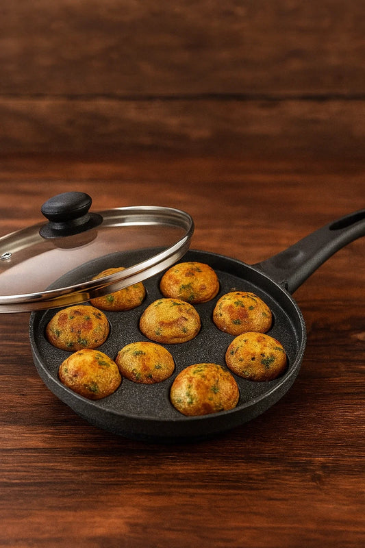Prestige Omega Select Plus Non-Stick Paniyarakkal with Glass lid (Appe Maker)|12 pits| 24cm|Residue Free Coating |Metal Spoon Friendly